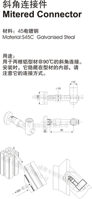 用于兩根鋁型材非90度的斜角連接。安裝時(shí),它隱藏在型材的內(nèi)部,請注意它的連接方式。