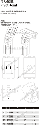 該鉸鏈用于兩段型材之間的活動(dòng)連接,其旋轉(zhuǎn)范圍為180度。